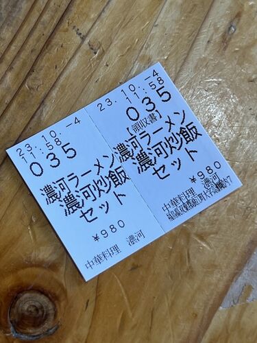 お昼。。。食券を購入 このセットは。。。?!?(笑) どっちも1人前じゃないんか?!?の濃河ラーメンと濃河炒飯のセット ダメって分かっとるんやけども,単品との差額が100円なんよね(笑) と言うことで,本日は浜通り方面へ出張し「濃河」さんに立ち寄…