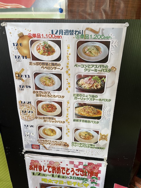 ナポリタンのおいしいお店の看板がでておりますが,注文は日替わりのカキとホウレン草のクリームパスタを(笑)