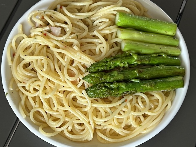 内,お昼のパスタは,前日に購入したアスパラを。。。使用